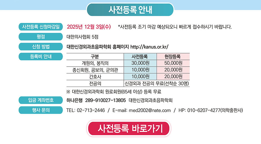 2025 대한신경외과초음파학회 제20차 학술대회 사전등록 바로가기
