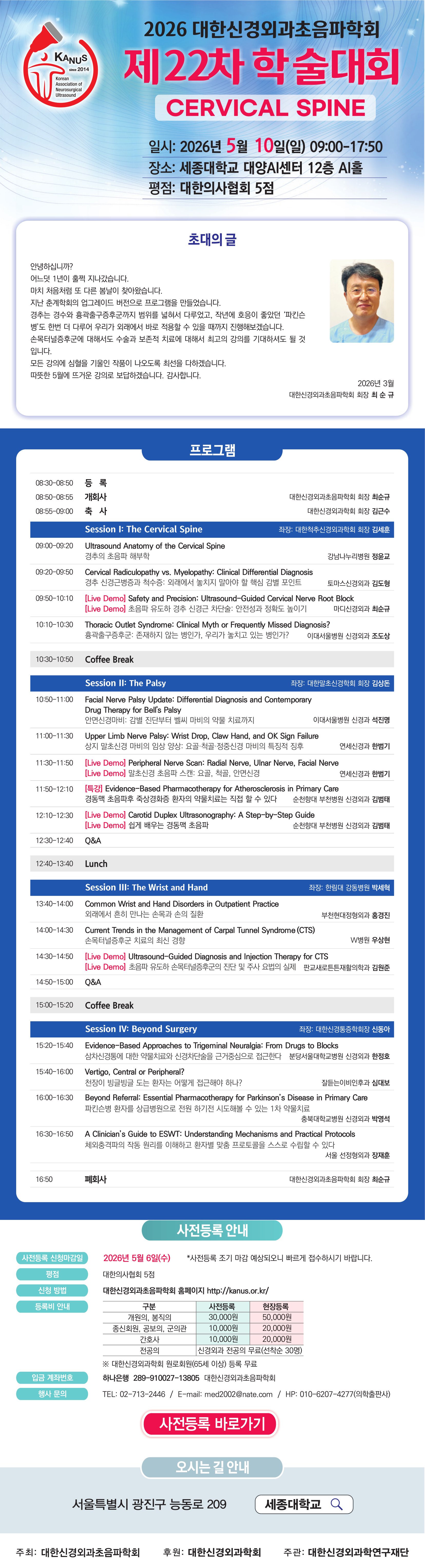 | 13 | 2025 대한신경외과초음파학회 제20차 학술대회 사전등록 바로가기 |