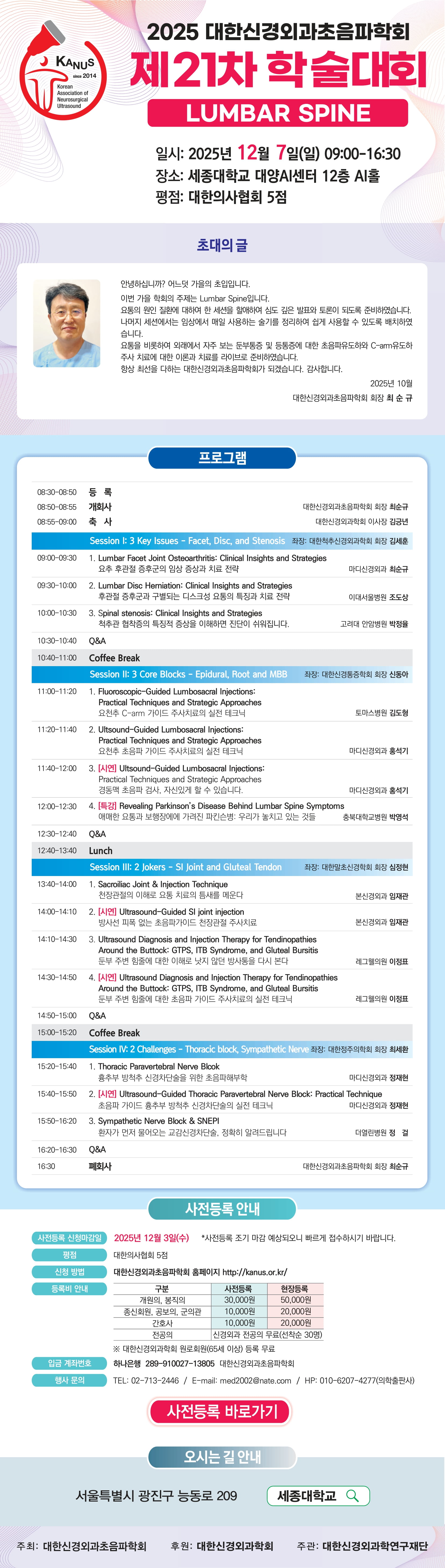 | 13 | 2025 대한신경외과초음파학회 제20차 학술대회 사전등록 바로가기 |